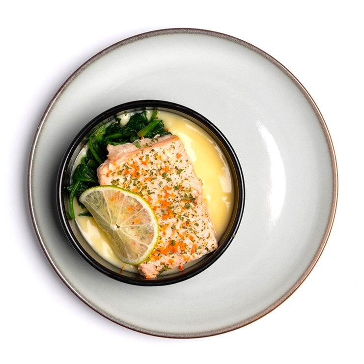 Zalmfilet met hollandaisesaus, spinazie, garnaaltjes & aardappelgarnituur
